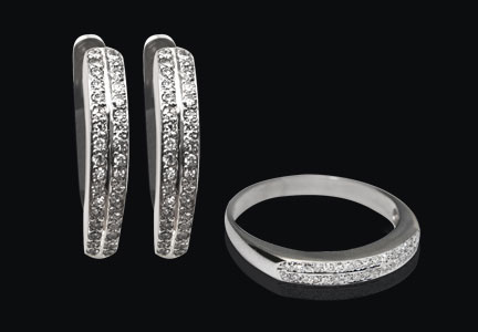 Белое золото (585), бриллианты. Варианты: желтое золото (585), серебро (925), драгоценные и полудрагоценные камни.