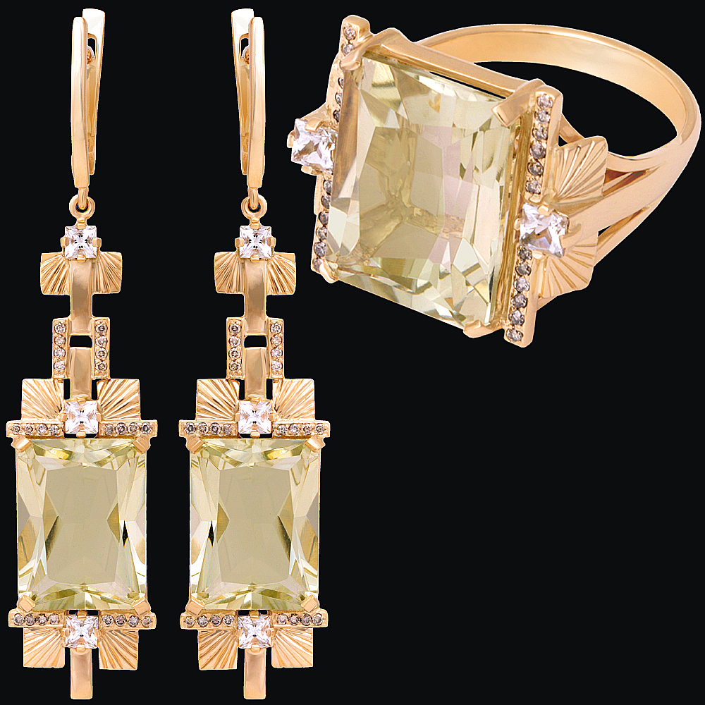 Золото(585), празиолиты, топазы, бриллианты коньячные.