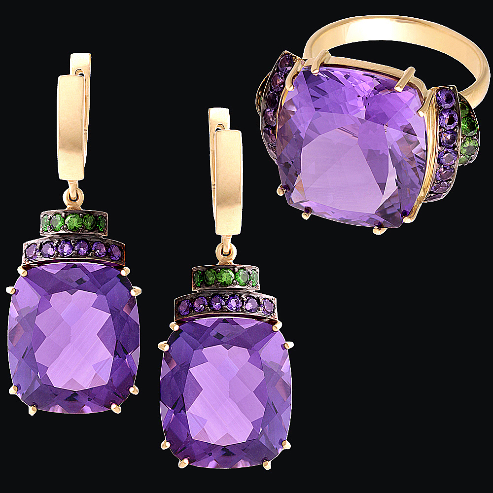 Золото(585), аметисты, тсавориты.