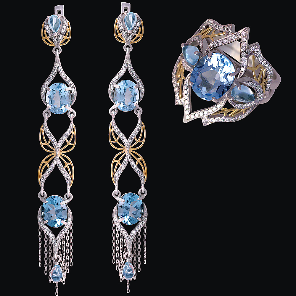 Золото(585), топазы, бриллианты.