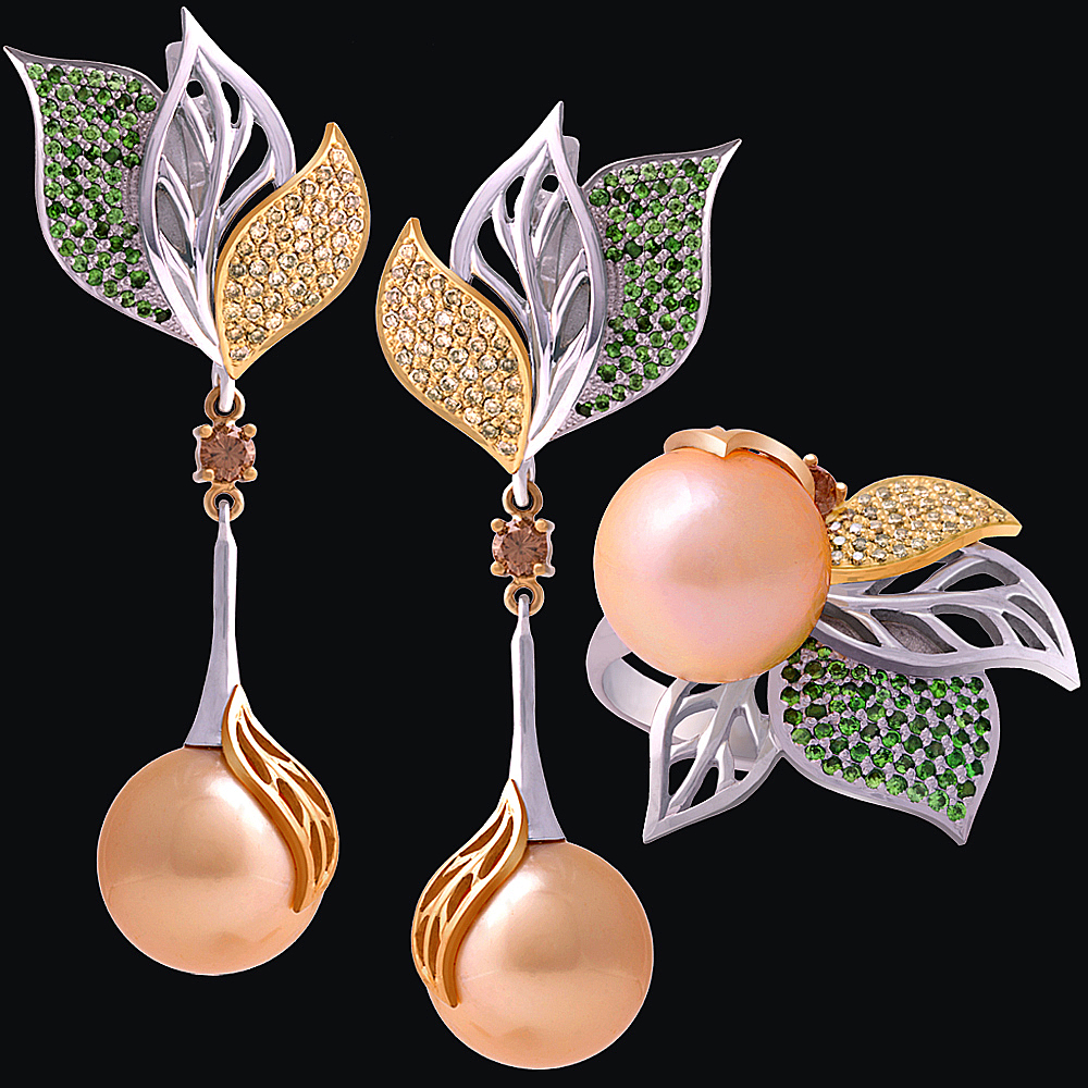 Золото(585), жемчуг, бриллианты, тсавориты.