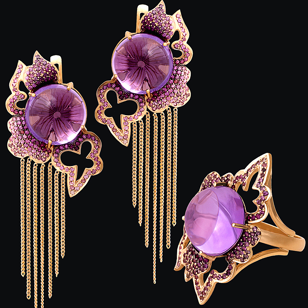 Золото(585), аметисты, сапфиры.