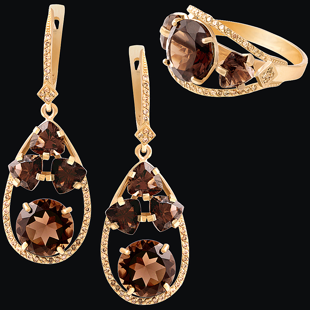 Золото(585), дымчатый кварц, бриллианты.