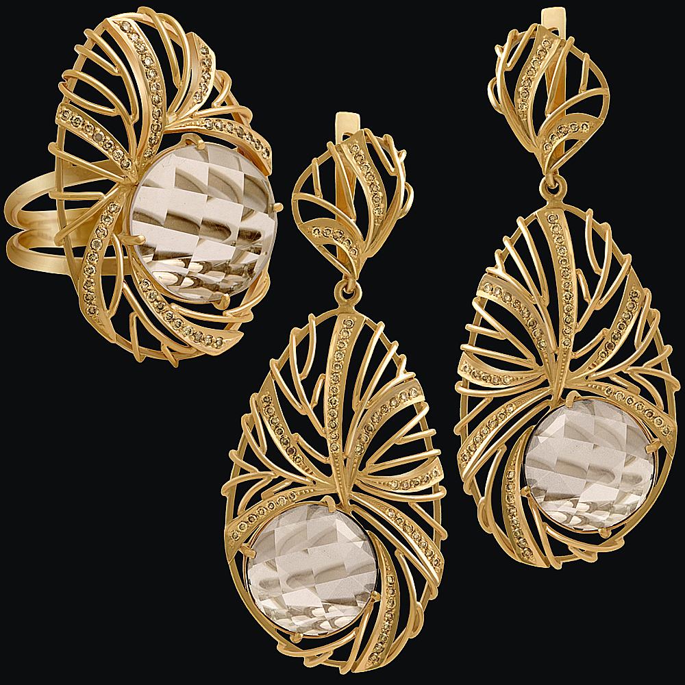 Золото(585), горный хрусталь, бриллианты.