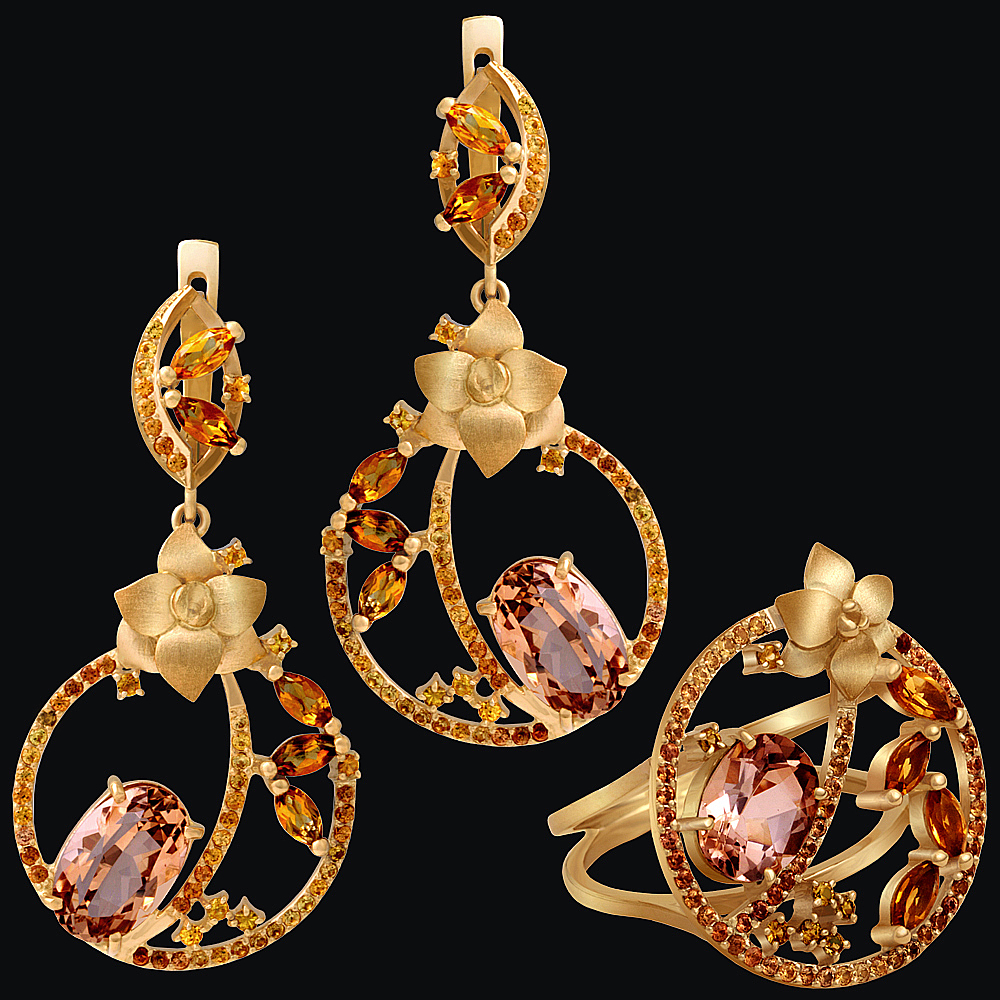 Золото(585), топазы, цитрины, сапфиры.