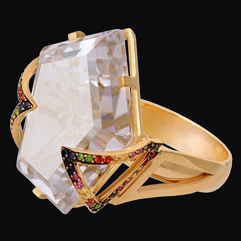 Золото(585), горный хрусталь, тсавориты, сапфиры.