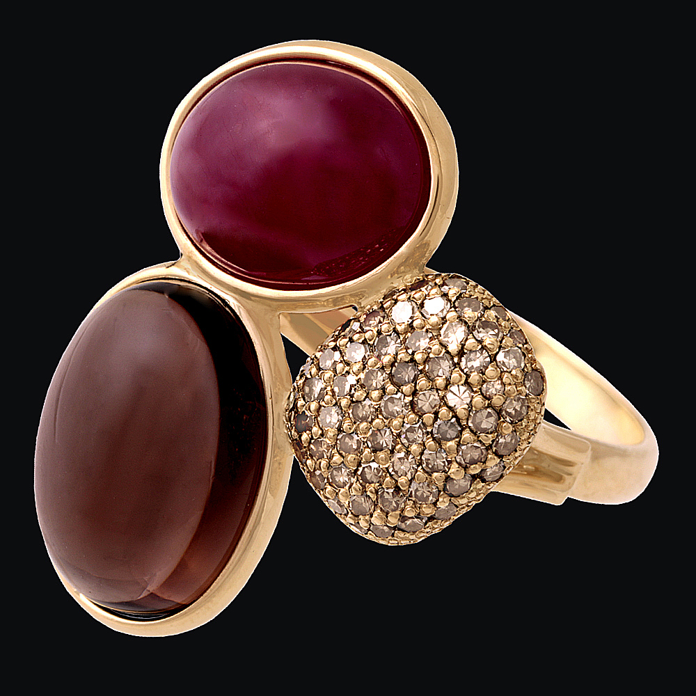 Золото(585), рубины, дымчатый кварц, бриллианты коньячные.