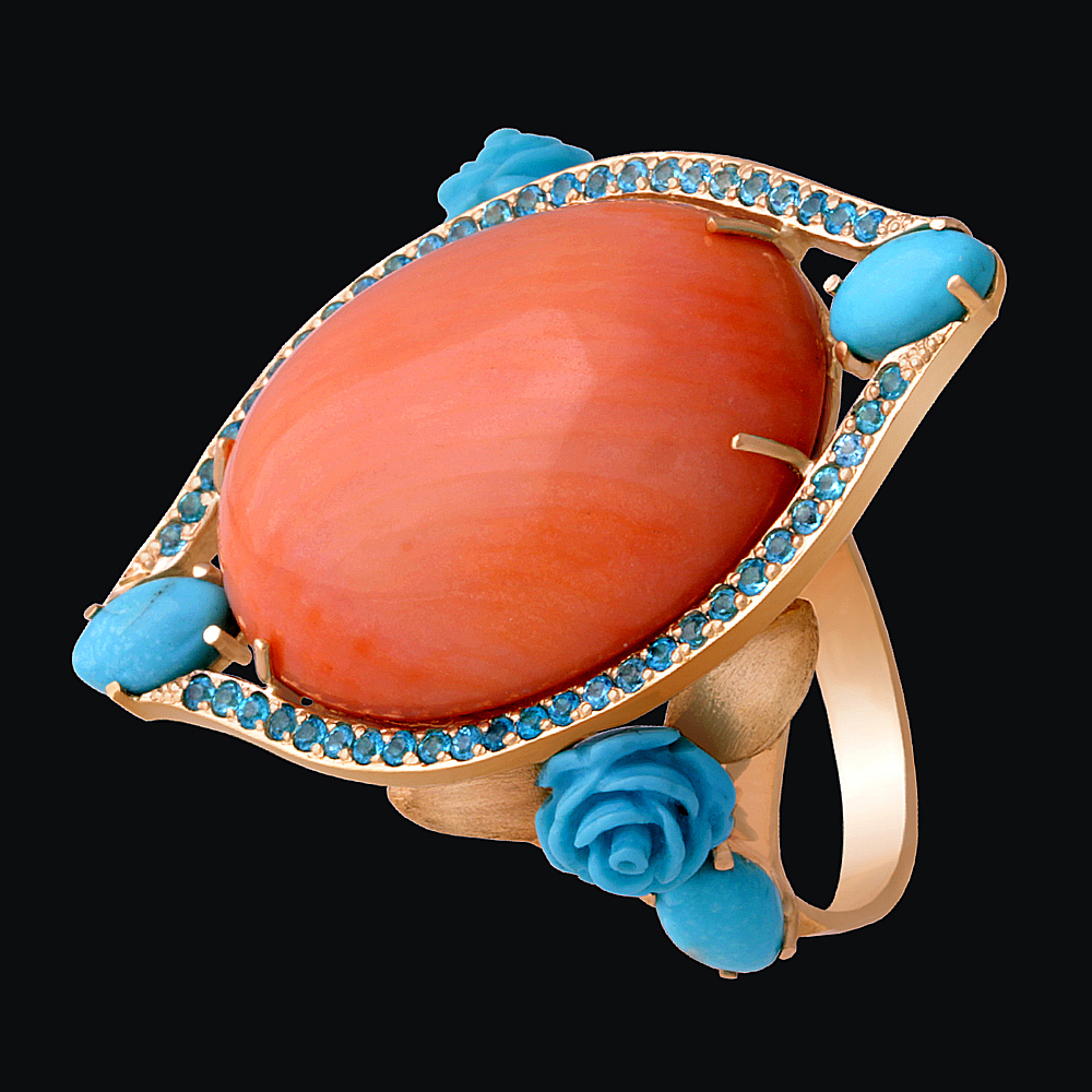 Золото(585), коралл, бирюза, апатиты.