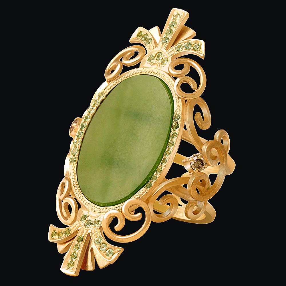 Золото(585), нефрит, перидот, бриллианты.