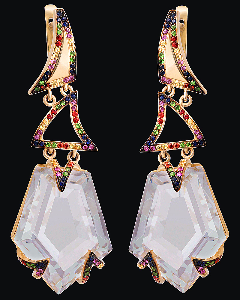Золото(585), горный хрусталь, тсавориты, сапфиры.