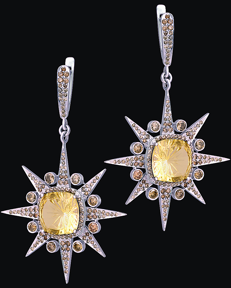Золото(585), кварц лимонный, бриллианты коньячные.