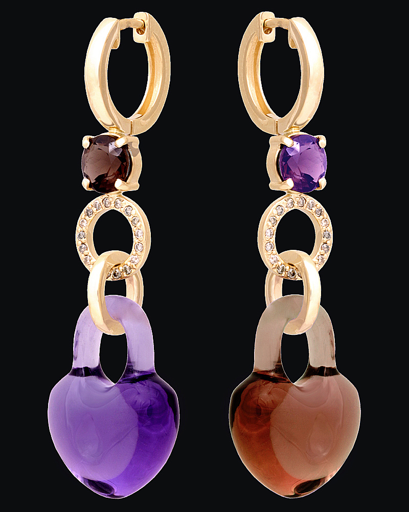 Золото(585), аметисты, дымчатый кварц, бриллианты коньячные.