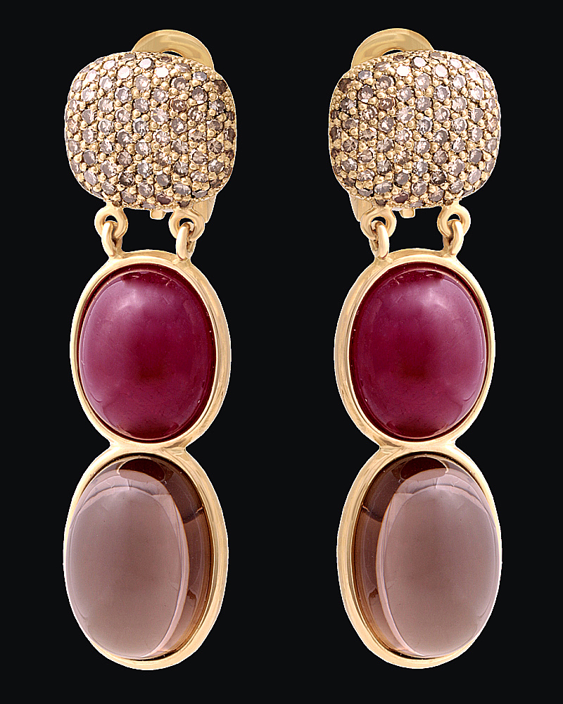 Золото(585), рубины, дымчатый кварц, бриллианты коньячные.