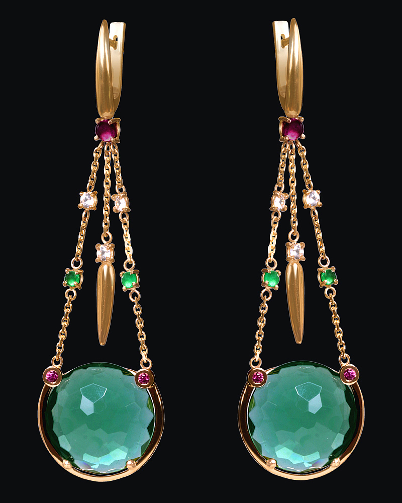 Золото(585), празиолиты, родолиты, изумруды, сапфиры.