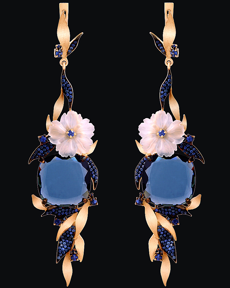 Золото(585), топаз "london", кварц, сапфиры.
