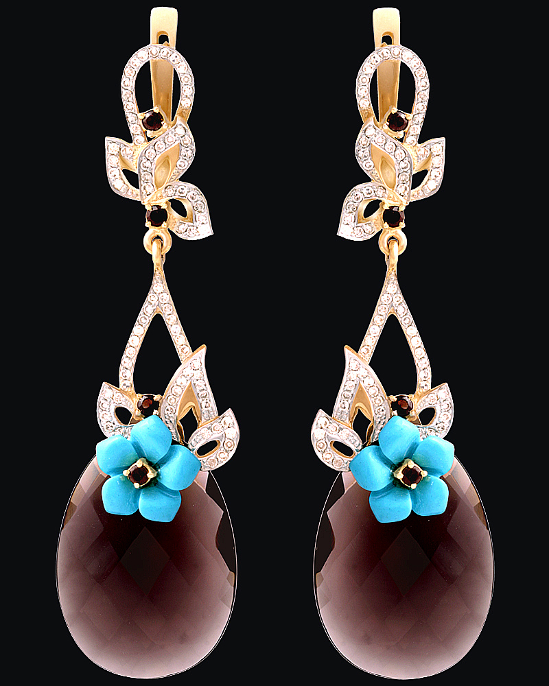 Золото(585), дымчатый кварц, бирюза, бриллианты.