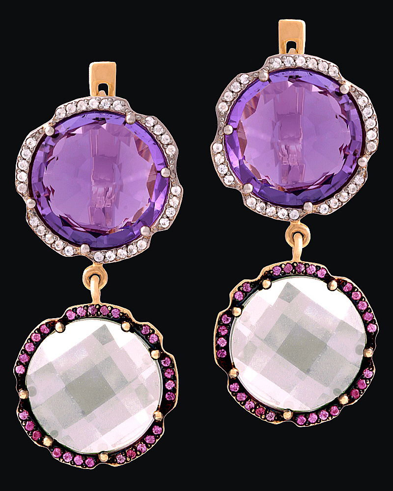 Золото(585), горный хрусталь, аметисты, сапфиры.