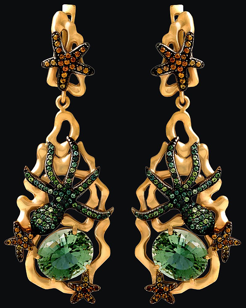 Золото(585), празиолиты, сапфиры.