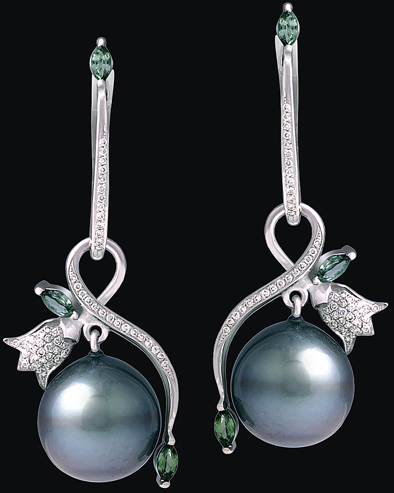 Золото(585), жемчуг, сапфиры, бриллианты.