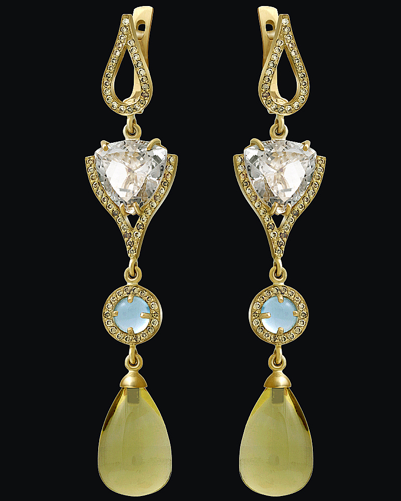 Золото(585), горный хрусталь, кварц, топазы, бриллианты.