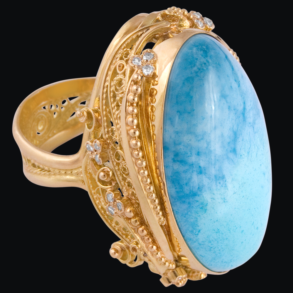 Желтое золото (585), бирюза казахстанская, бриллианты.