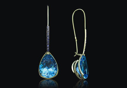 Белое золото (585), топаз, бриллианты. Варианты: драгоценные и полудрагоценные камни.