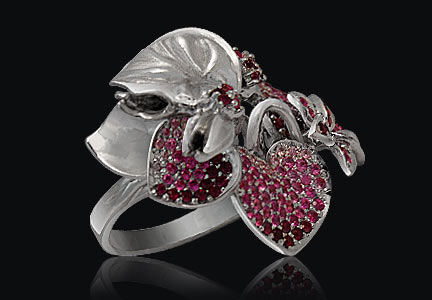 Белое золото (585), рубины, сапфиры, бриллианты. Варианты: желтое золото, цветные сапфиры.