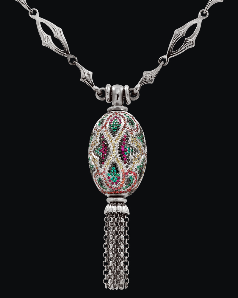 Подвеска из арабской коллекции ручной работы. Белое золото (750), бриллианты, сапфиры, рубины, изумруды.