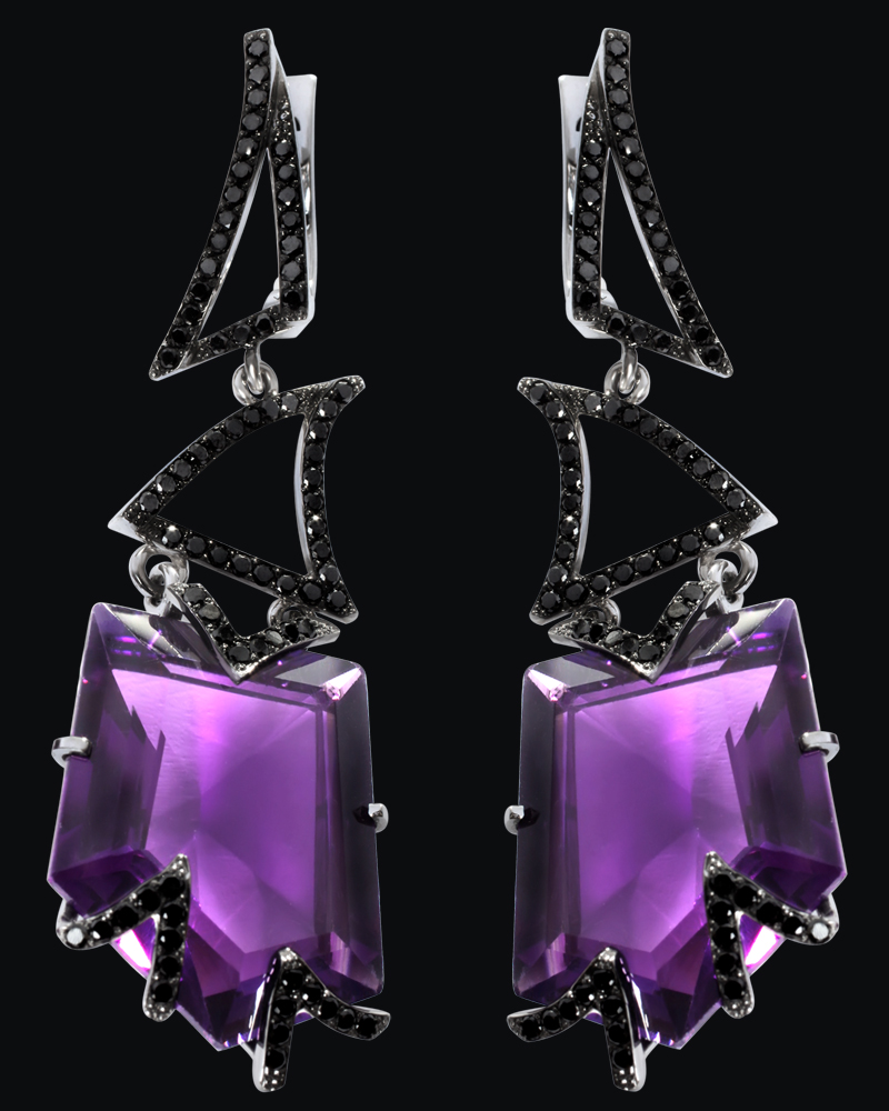 Золото (585), черные бриллианты, аметисты, родирование.
