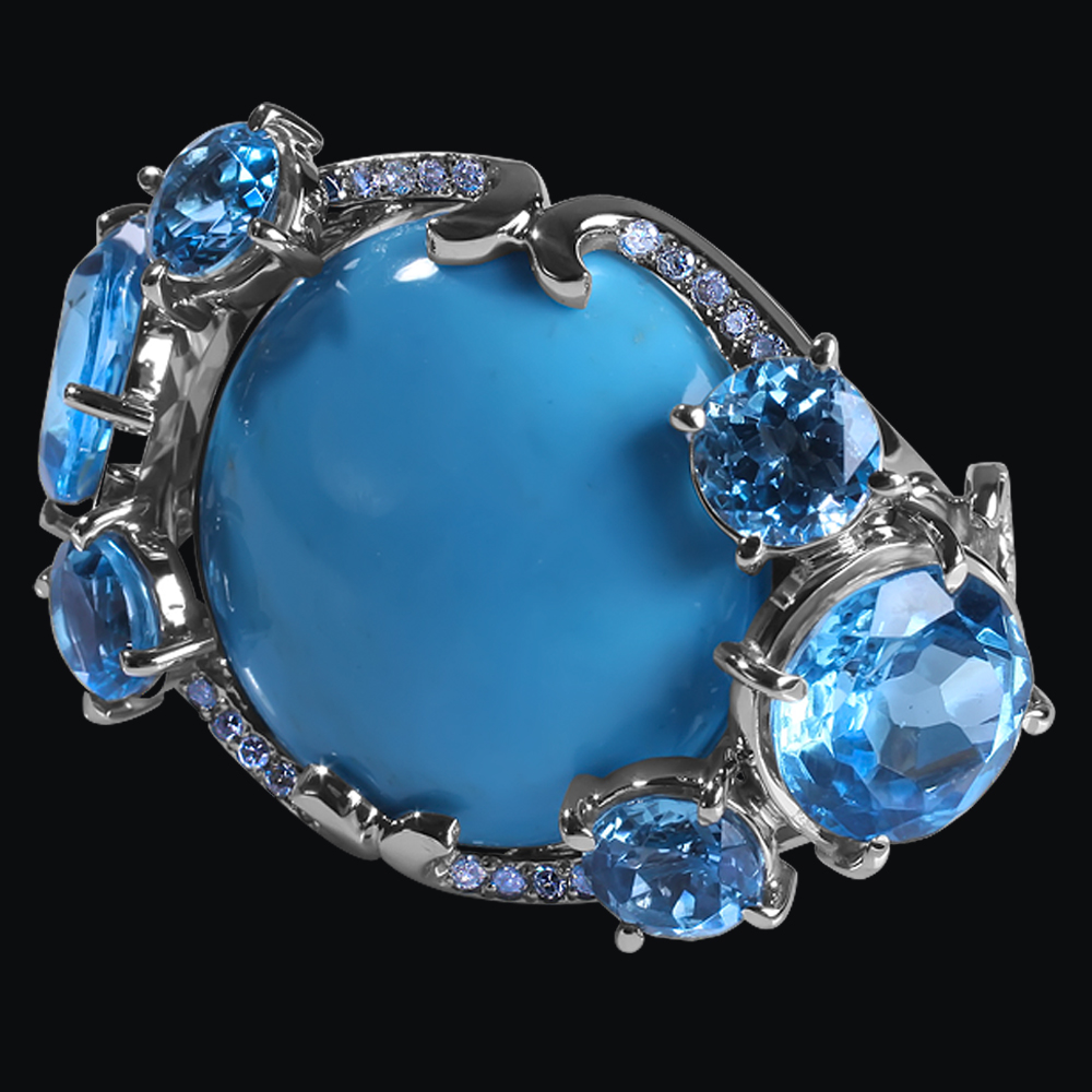 Белое золото (585), бирюза, топазы.