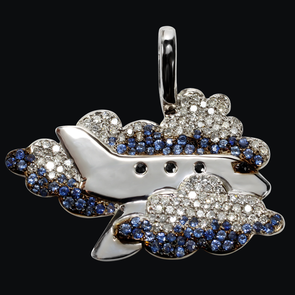 Белое золото, бриллианты, сапфиры.