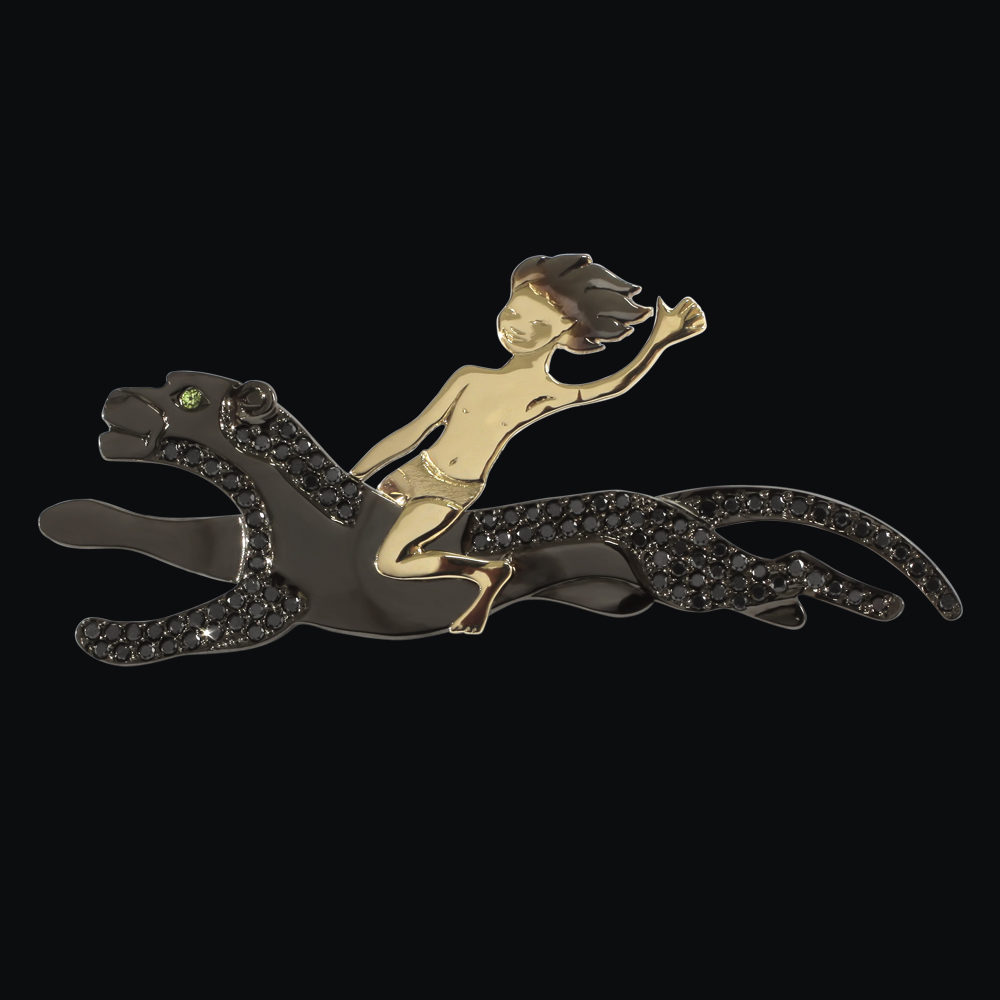 Желтое золото (585), черные бриллианты, родирование.