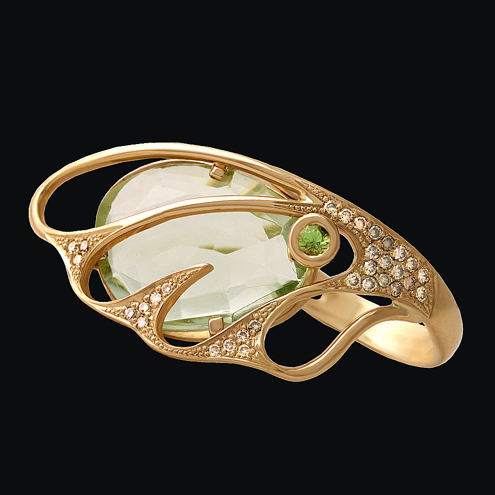 Золото(585), празиолит, тсаворит, бриллианты.