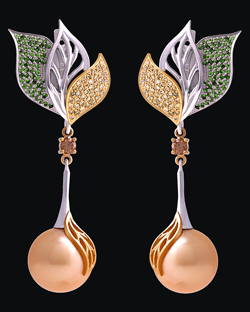 Золото(585). Жемчуг, тсавориты, бриллианты.