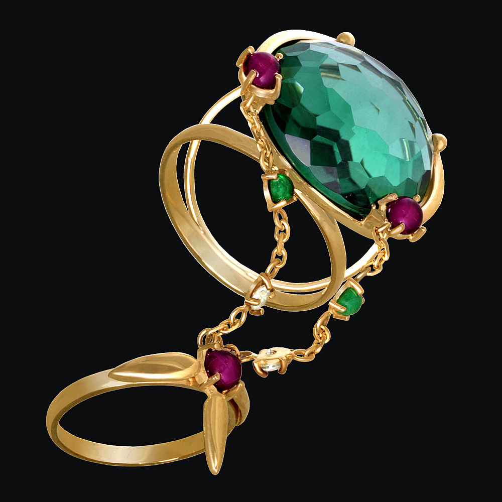 Золото(585), празиолит, родолиты, изумруды, сапфиры.