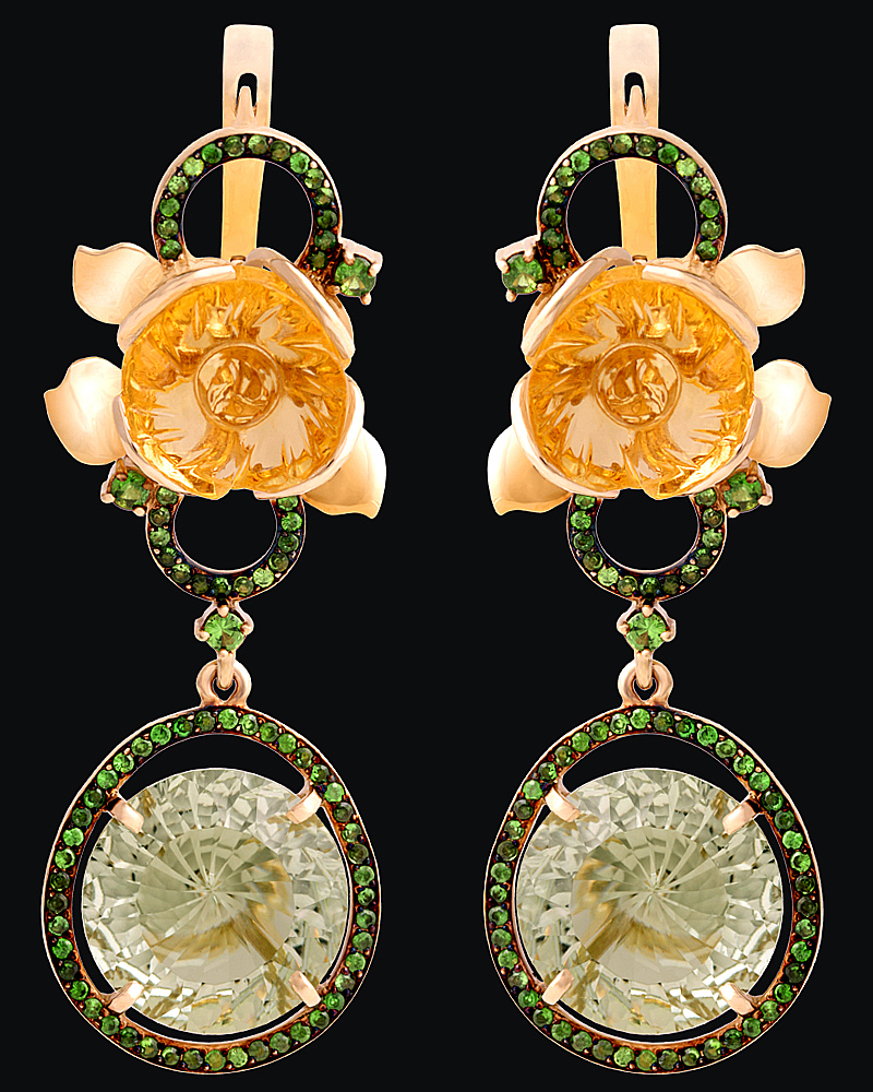 Золото(585), цитрины, празиолиты, тсавориты.