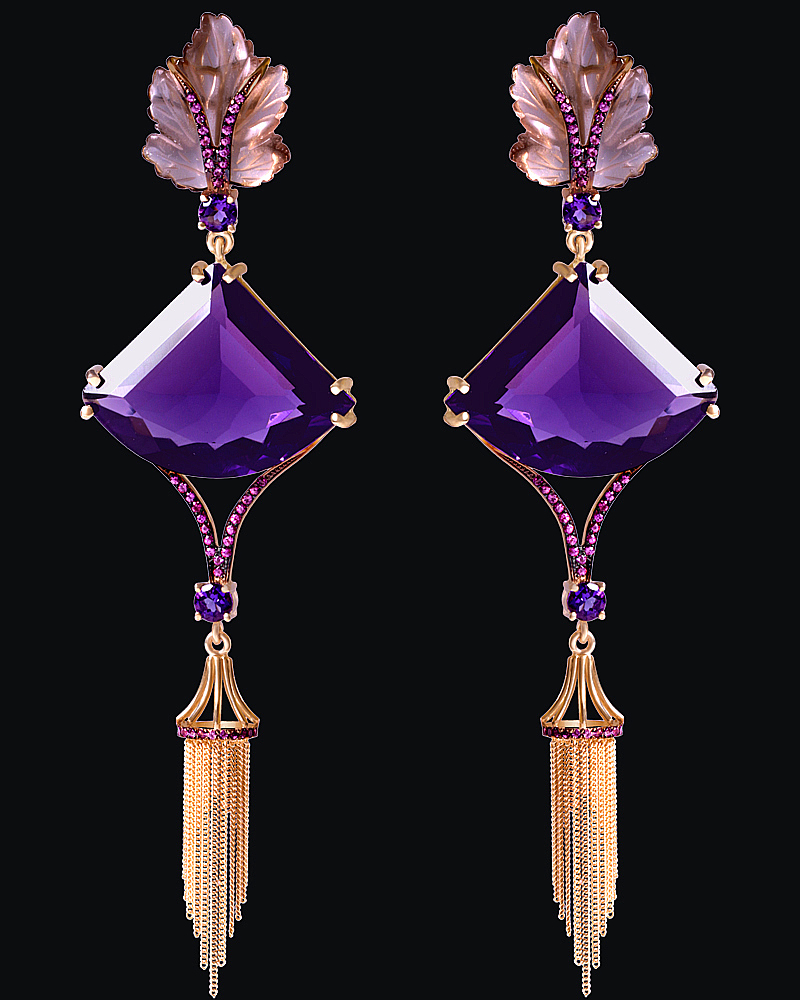 Золото(585), аметисты, дымчатый кварц, родолиты.