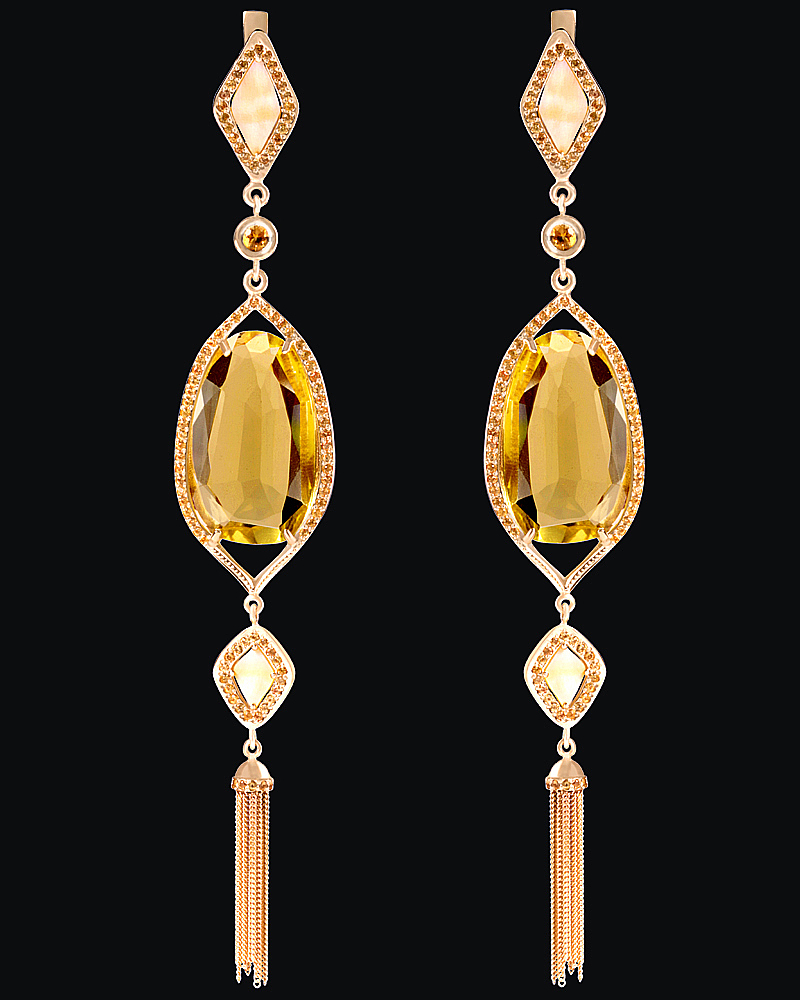 Золото(585), кварц лимонный, цитрины, сапфиры, перламутр.